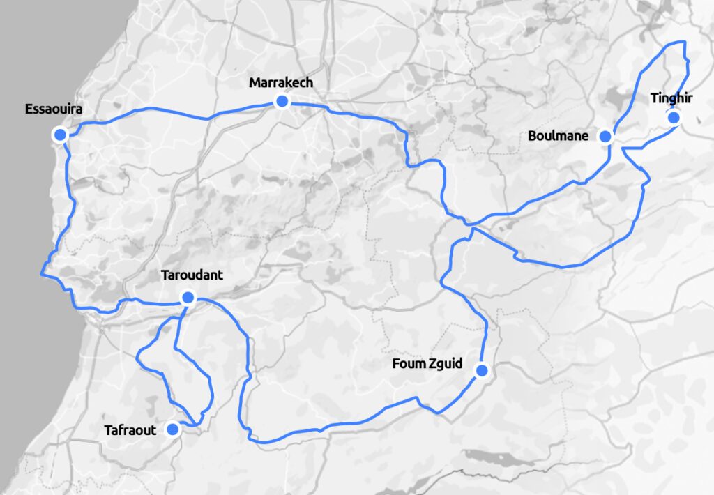 Loop Ride from Taroudant to Taroudant, Tafraoute, Anti Atlas Mountain Ride